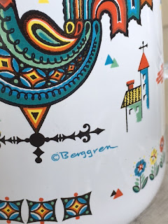 When I got it home, I noticed the name Berggren at the bottom, so I did a little Google searching. It turns out that Berggren is a line of Swedish folk art from the sixties, and guess what? It's a collectible! I saw my sweet little coffee pot at auction sites for $40!